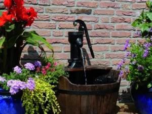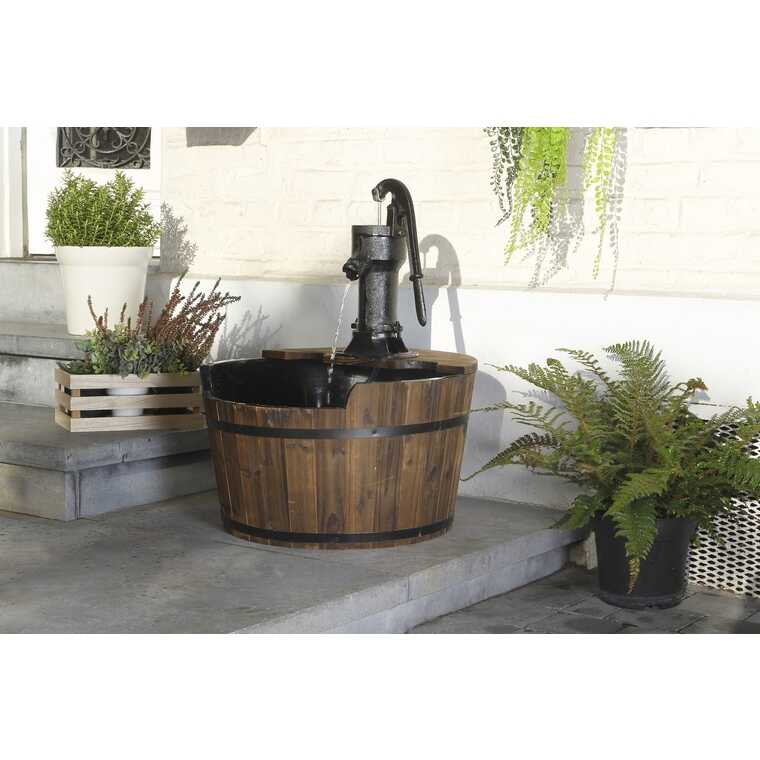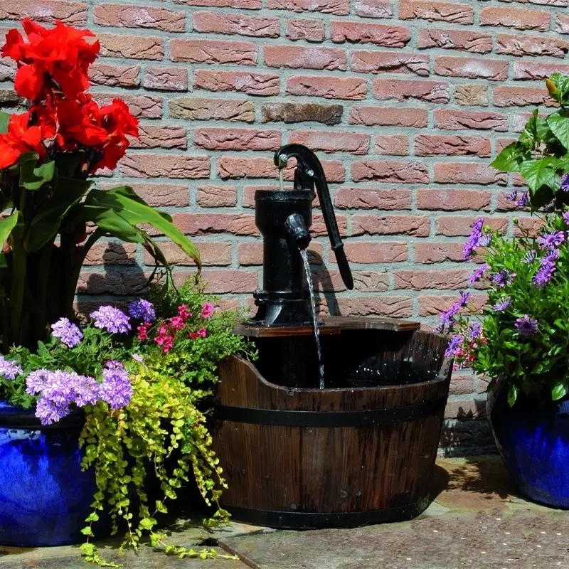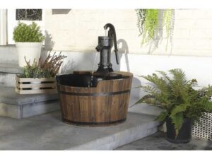 يجب الاهتمام بنظافة خزان المياه للمحافظة على صفاء المياه، لمنع انسداد عناصر الديكور وتكاثر الطحالب. يمكنك الحصول على مظهر أكثر متعة إذا قمت بتزيين المنتج بالحصى بعد وضعه. ملاحظات تشتمل المجموعة على وعاء ماء خشبي ونافورة مضخة حديدية؛ المضخة والتجهيزات متضمنة. ويمكن تثبيته بسهولة في أي مكان تريده.nn